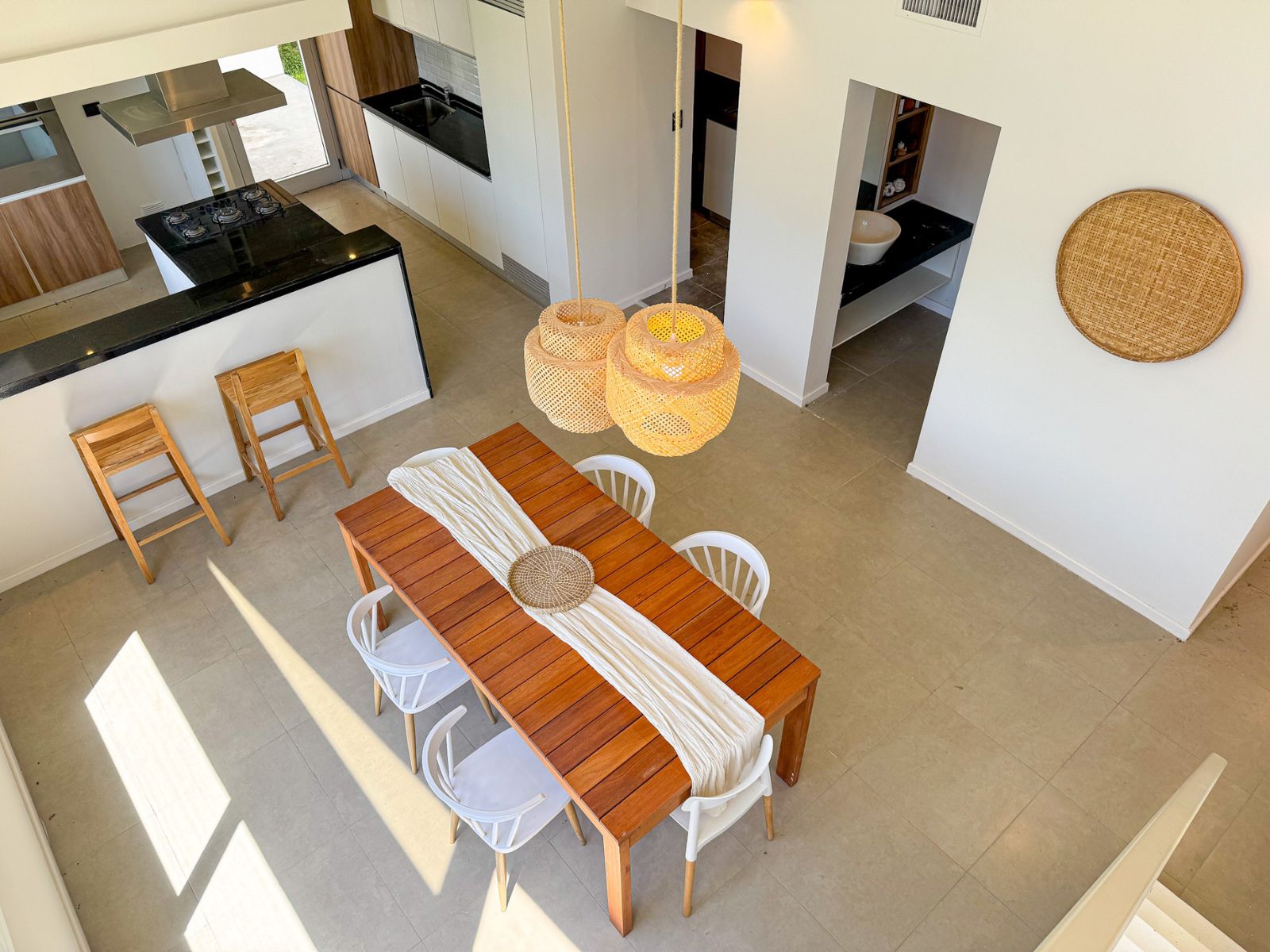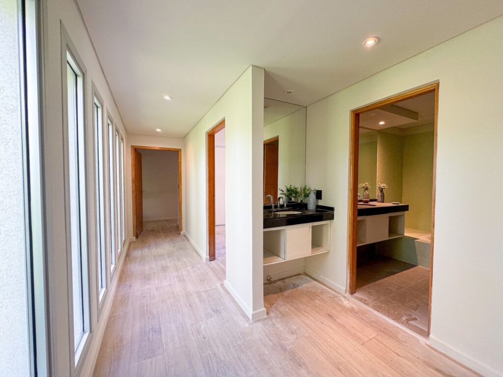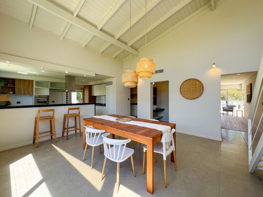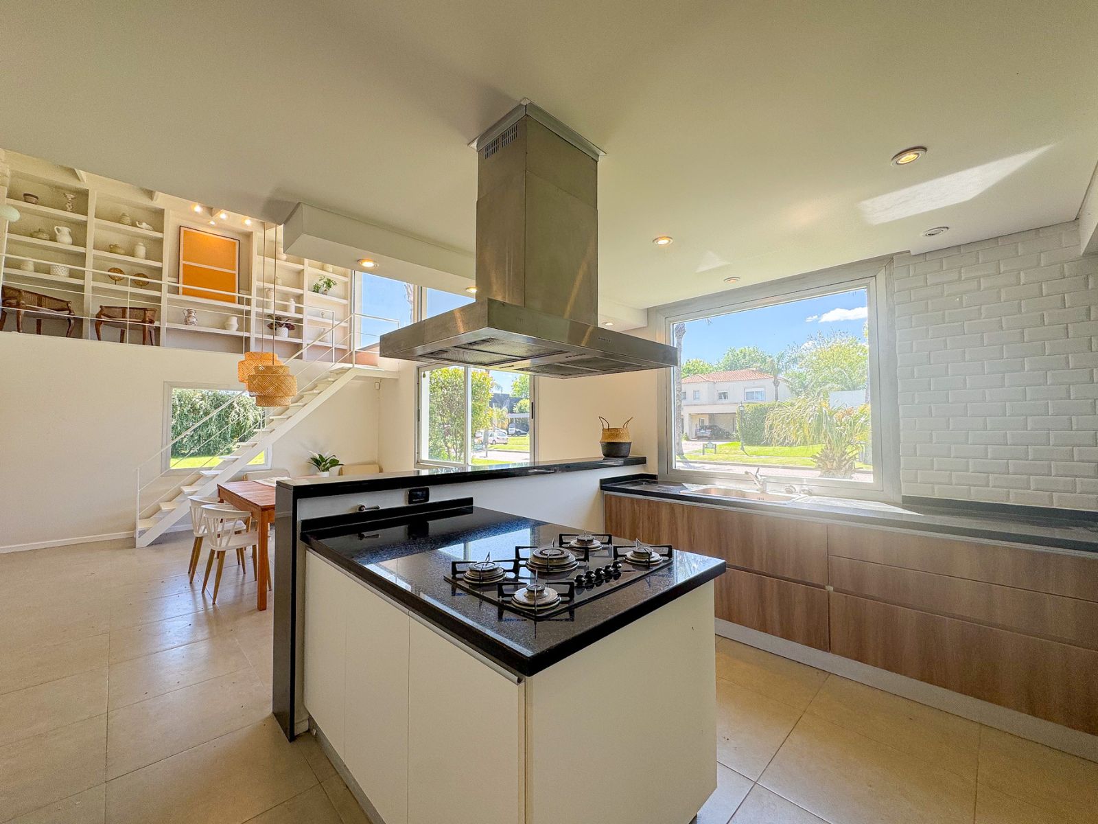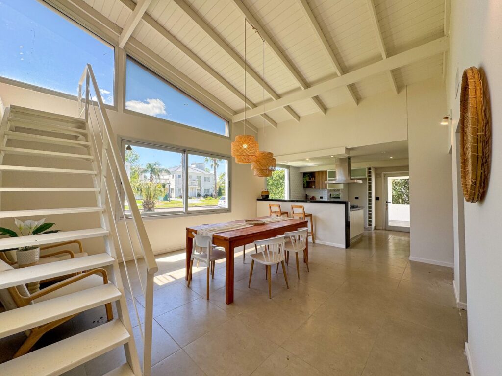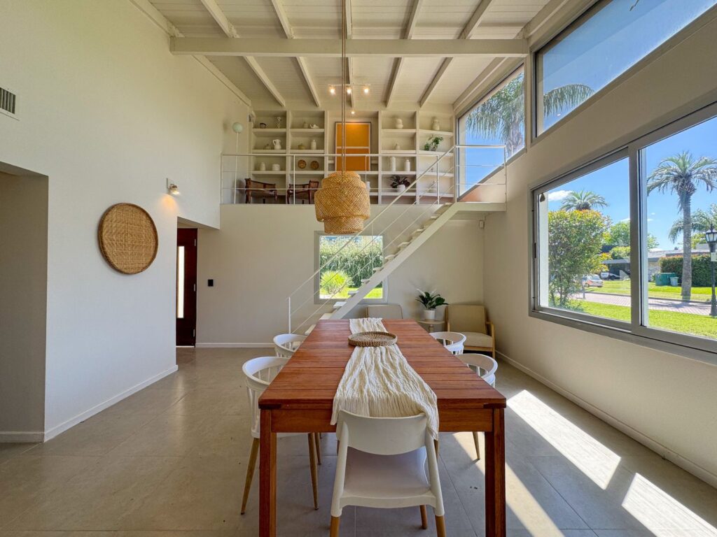 La vivienda se desarrolla sobre un terreno amplio, permitiendo generosas áreas descubiertas y una conexión directa con el espacio exterior. Al ingresar, un hall central organiza el recorrido hacia los ambientes de uso diario: un estar-comedor muy luminoso con vistas despejadas al jardín, cocina moderna integrada mediante barra desayunadora, y un sector de lavadero sectorizado que aporta funcionalidad. La zona íntima reúne tres dormitorios, entre ellos el principal en suite con vestidor, y un baño completo adicional de uso común.