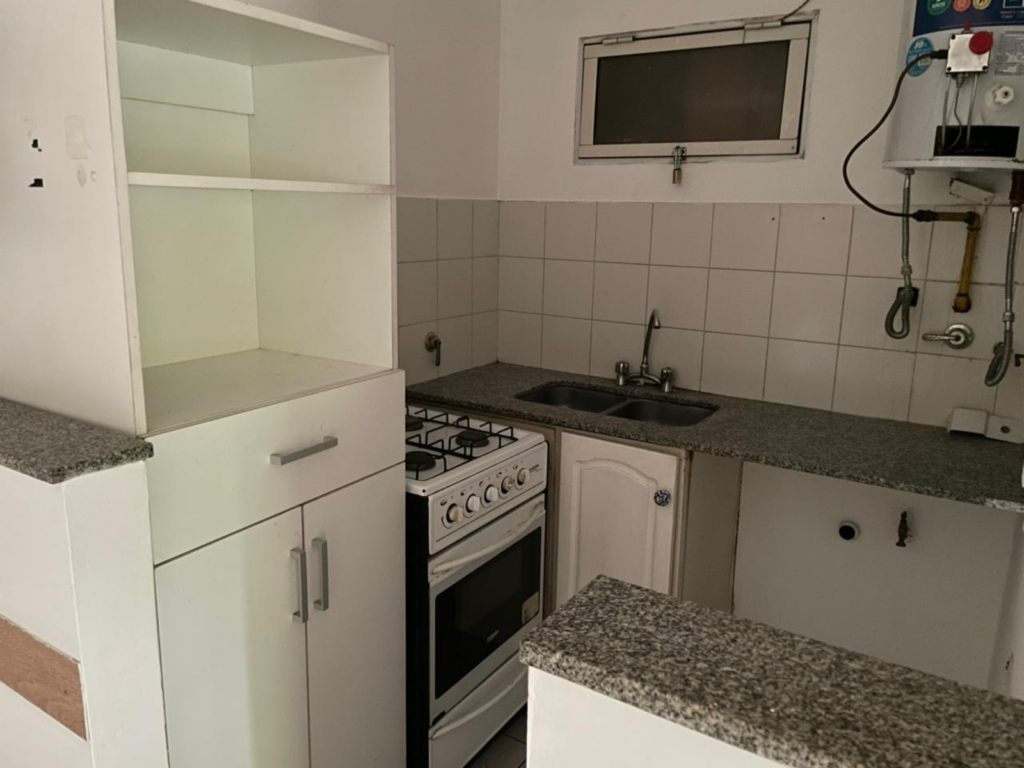 - Cocina semi integrada equipada con cocina a gas y termotanque;