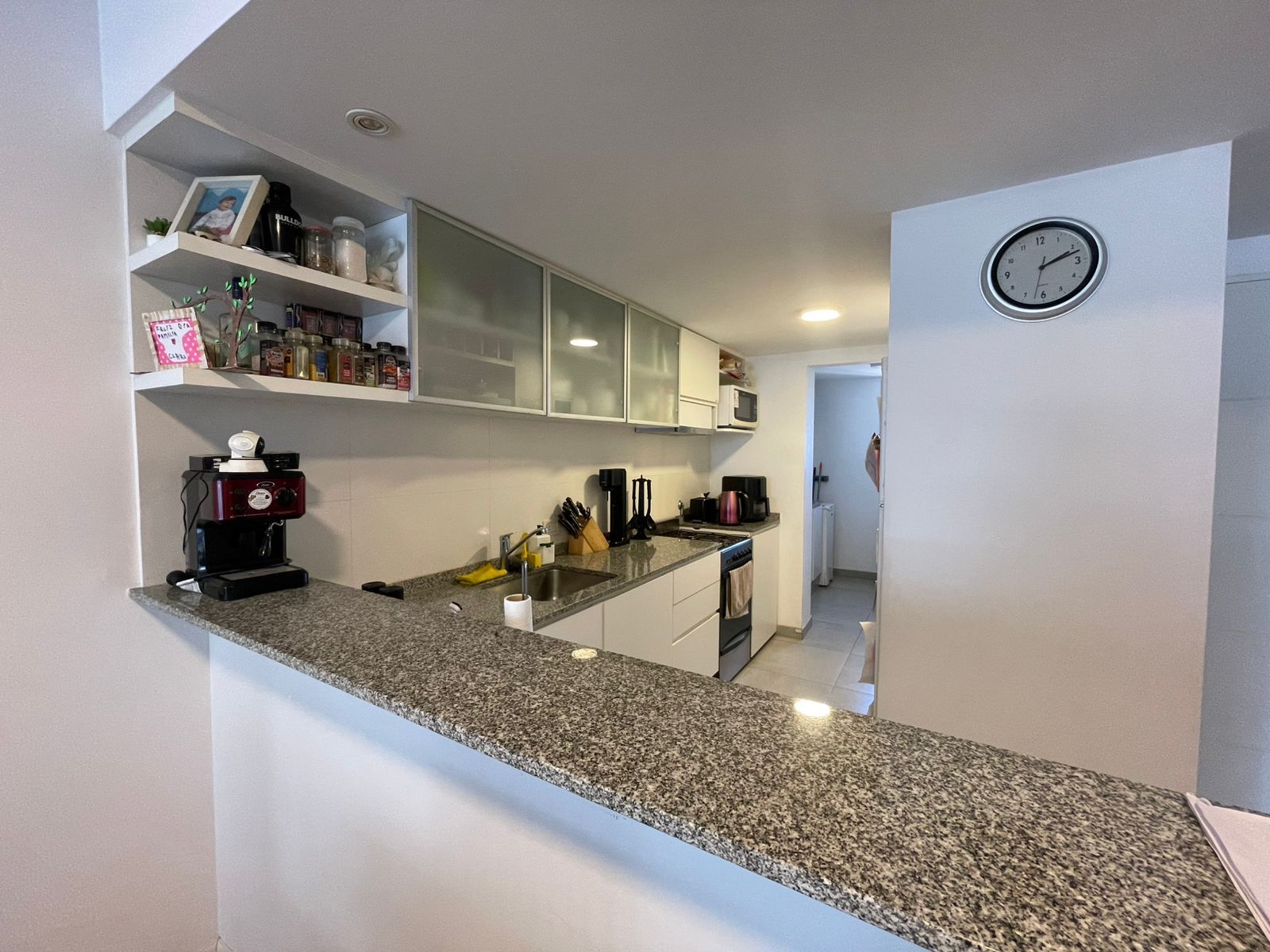 La cocina se integra mediante barra desayunadora, logrando una división funcional sin perder conexión con el sector social. Cuenta con amoblamiento completo, mesada de calidad y pisos de porcelanato en este sector, al igual que en el área de lavadero, que se encuentra correctamente separado, aportando practicidad al uso diario.